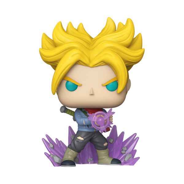 Trunks has achieved his Super Saiyan form!This exclusive POP! Super Saiyan Trunks is ready to take on any threats to Earth in your Dragon Ball Super collection, so add this son of Bulma and Vegeta to your heroic lineup!There's a 1 in 6 chance you may find the glow-in-the-dark chase of POP! Super Saiyan Trunks.Vinyl figure is approximately 4.9 in (12.4 cm) tall.Chase variants are shipped at random.Receiving a chase with purchase is not guaranteed.