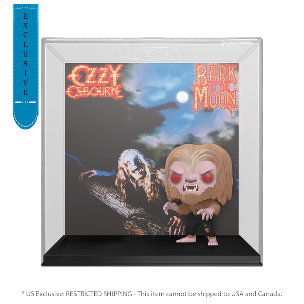 Turn up the volume in your music collection with English singer and songwriter Pop! Ozzy Osbourne in his fearsome werewolf ensemble!This exclusive Pop! Album features a flocked Pop! Ozzy Osbourne, as well as the cover art from his album Bark at the Moon!Packaged in a protective hard case, this Pop! Album can be hung on a wall or placed on a shelf next to your music collection.Vinyl figure is approximately 3.9-inches tall.Pop! figure is adhered to the base and backdrop to ensure display integrity.Approximate dimensions of protective case: 8.75" W x 8.75" H x 3.75" D.