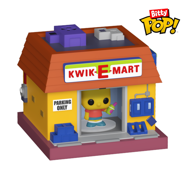 Your favorite The Simpsons POP! collectibles have been shrunk into Bitty POP! collectibles.Expand your collection with Bitty POP! Town Bart Simpson and Kwik-E-Mart!Bitty POP! figure is packaged in a hard acrylic display case with a detachable bottom lid.The detachable bottom lid doubles as an acrylic base, to which the Bitty POP! figure is adhered.Remove this exclusive Bitty POP! Bart Simpson from his display case so he can step inside the Bitty POP! Town Kwik-E-Mart!Vinyl figures are approximately 0.9 and 1.75-inches tall.Warning: Choking Hazard. Collectibles are small.Not for children under the age of 3 years old.
