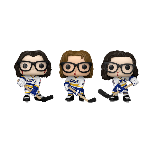 Help keep the Charleston Chiefs on the ice with the Hanson Brothers!Help Pop! Steve Hanson, Pop! Jack Hanson, and Pop! Jeff Hanson rally fans to the rink when you welcome this 3-pack to the team in your Slap Shot collection.Vinyl figures are approximately 4.15-inches tall.