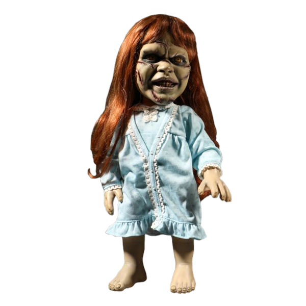 Mezco unleashes the Mega Scale Exorcist with Sound Feature figure and it’s sure to make your head spin.Standing at a menacing 15 inches tall, Regan MacNeil from The Exorcist is presented in a real cloth nightgown from the film. The possessed youth says 6 iconic and hair-raising phrases including "It burns!" and "Keep away! The sow is mine!". The devil is in the details and each of them have been captured here; from Regan’s untamed real hair to her crazed, piercing eyes and maniacal grin. This Mega Scale Exorcist figure features 11 points of articulation for dynamic nightmarish poses. Breaking onto the cinematic scene in 1973, The Exorcist became the first horror film to be nominated for an Academy Award. The film tells the spine-tingling story of the demonic possession of a young girl, and a mother’s fight to save her daughter through an exorcism. The Mega Scale Exorcist figure comes packaged in a collector-friendly window box, perfect for display.