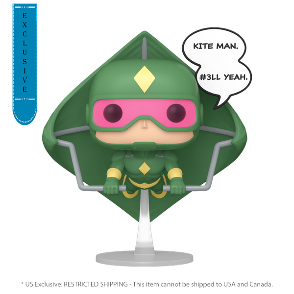 It's time to take villainy to new heights!Take a page out of your favorite DC comic with this exclusive Premium Pop! Kite Man, featuring a speech bubble of his iconic "KITE MAN. #3LL YEAH." quote!Complete your DC Harley Quinn collection by welcoming Premium Pop! Kite Man to your super villain lineup.Vinyl figure is approximately 4.95-inches tall.