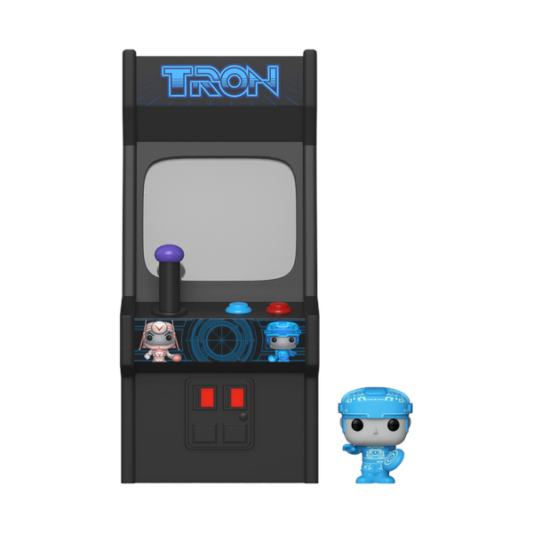 The world of POP! is getting bigger - and smaller - with Bitty POP! collectibles!Expand your Tron collection with Bitty POP! Bitty Arcade Tron!Bitty POP! figure is packaged in a hard acrylic display case with a detachable bottom lid. The detachable bottom lid doubles as an acrylic base, to which the Bitty POP! figure is adhered.Remove Bitty POP! Tron from his case so he can take his place in the Bitty POP! Arcade Display!The Bitty POP! case can be stored inside the Bitty POP! Arcade Display, directly below POP! Tron.Vinyl figures are approximately 0.9 and 3.45-inches tall.Warning: Choking Hazard. Collectibles are small.Not for children under the age of 3 years old.