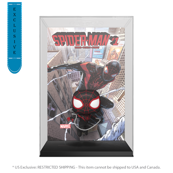 Villains beware!Miles Morales is here to protect Brooklyn from evil as Pop! Spider-Man!Give him a new vantage point in your Marvel collection as this exclusive Pop! Comic Cover, featuring the web-slinger swinging against a background of himself on the cover of Spider-Man #1.Vinyl bobblehead is approximately 3.8-inches tall.Pop! figure is adhered to the base and backdrop to ensure display integrity.Approximate dimensions of protective case: 7" W x 10.75" H x 3" D.