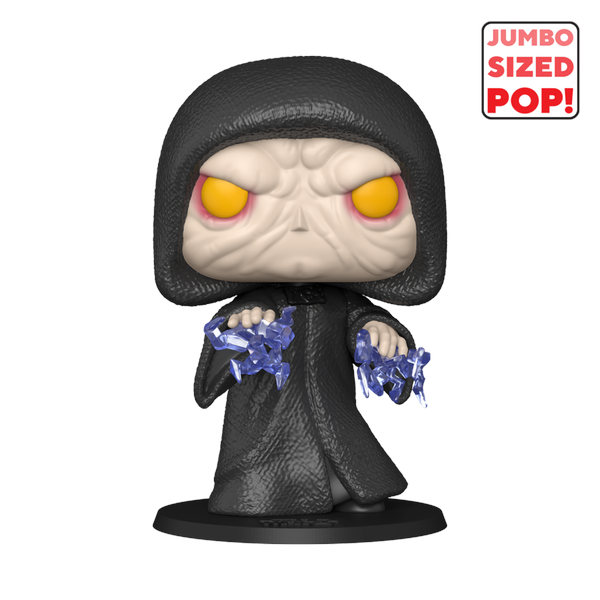 Join the Dark Side with this Jumbo Pop! Emperor Palpatine as he shoots Force lightning from his hands!This Sith Lord is looking to defeat the Jedi in your Star Wars collection, so prepare your set for battle!Vinyl bobblehead is approximately 10-inches tall.