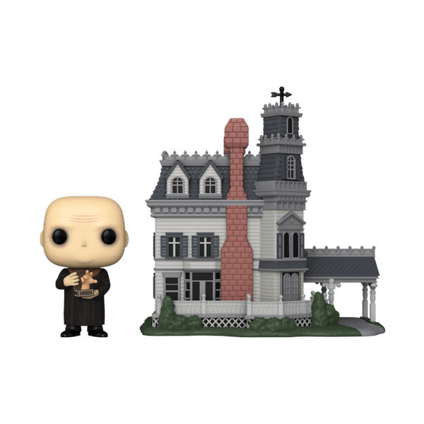 Gather your creepy and kooky relatives; Pop! Uncle Fester and Thing have arrived!Expand your Addams Family collection with this Pop! Town featuring Pop! Uncle Fester holding Thing with the Addams Family Home!Vinyl figures are approximately 3.85 and 6.45-inches tall.