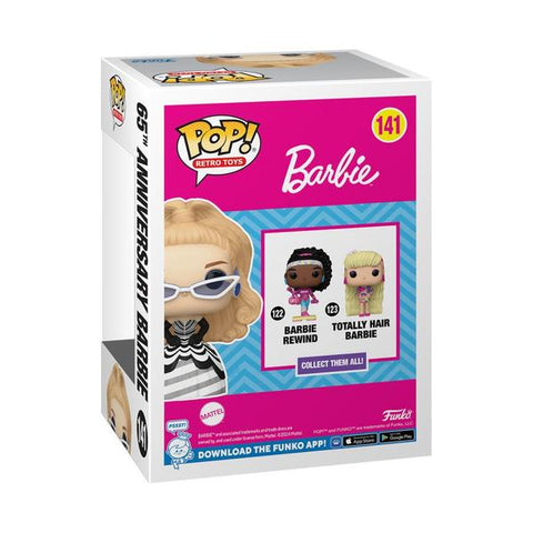 It's time to celebrate!Commemorate 65 Years of Barbie by welcoming this exclusive Pop! 65th Anniversary Barbie to your Retro Toys set!In her stunning black-and-white striped ballgown, this Pop! Barbie is sure to wow the rest of your collection.Vinyl figure is approximately 4.55-inches tall