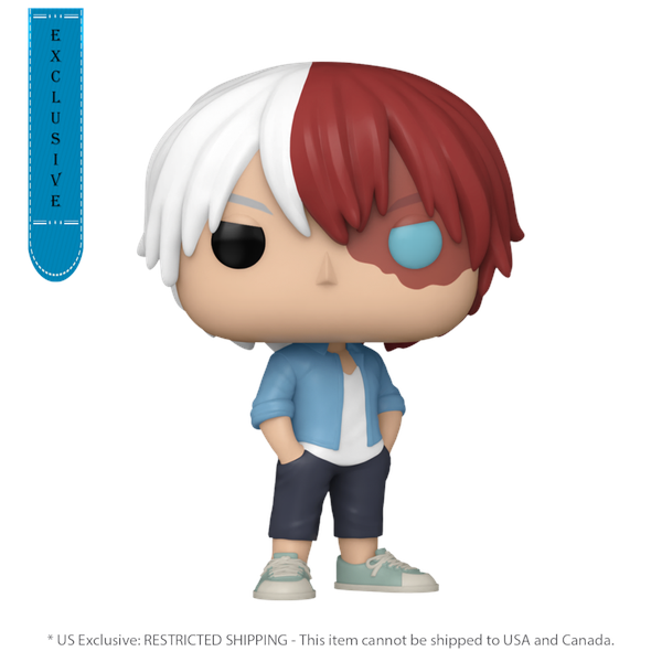 Shoto Todoroki is a hero-in-training at U.A. High School, learning to use his quirk ability to summon fire and ice as a means for fighting against the League of Villains.Help this exclusive Pop! Shoto Todoroki in casual clothes continue his training in your My Hero Academia collection alongside his fellow students.Vinyl figure is approximately 4-inches tall.