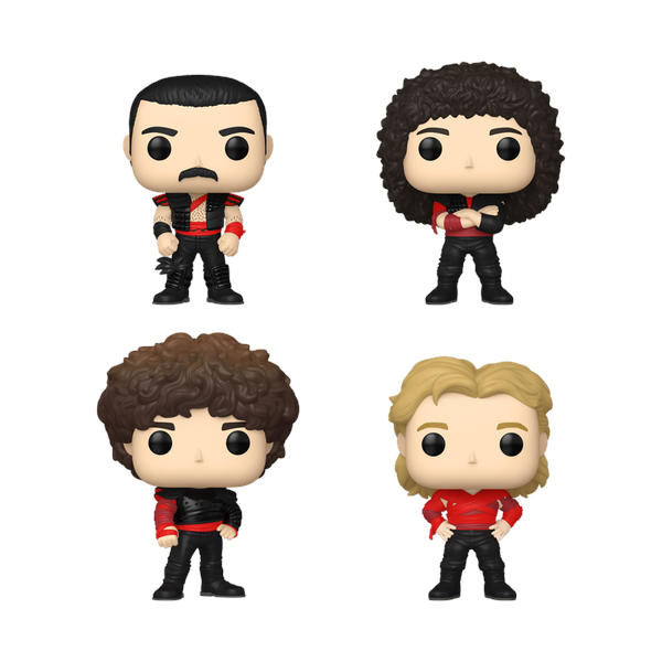 Bring down the house with an unforgettable performance by Queen!Complete your music lineup with this 4-pack featuring Pop! Freddie Mercury, Pop! Brian May, Pop! John Deacon, and Pop! Roger Taylor as seen in their hit song "Radio Ga Ga."Who will this legendary band collaborate with in your Pop! Rocks collection?Vinyl figures are approximately 3.85 to 4.5-inches tall.