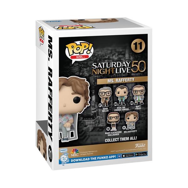 Get ready for a wild story with Pop! Ms. Rafferty!She's ready to share her unique experiences with the rest of your collection.Celebrate the 50th Anniversary of Saturday Night Live by making this comical character the next addition to your SNL lineup!Vinyl figure is approximately 3.5-inches tall.