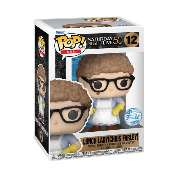 Serve up some sloppy joes and other culinary delights in your collection with this exclusive POP! Lunch Lady (Chris Farley)!Celebrate the 50th Anniversary of Saturday Night Live by making this comical character the next exclusive addition to your SNL lineup!Vinyl figure is approximately 4.1-inches tall.