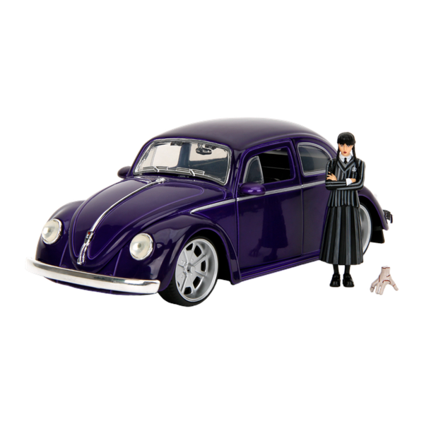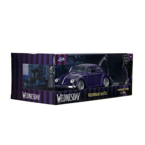 Jada Toys presents the all new Wednesday (TV) - VW Beetle with Wednesday figure 1:24 Scale Diecast Vehicle Set.- Crafted from durable die-cast material- Perfect gift for kids and adult- Die cast body with moving parts- Durable enough to be played indoors or outdoor- Elegant and lovely eye-catching design- 1:24 Scale Add it to your collection today.